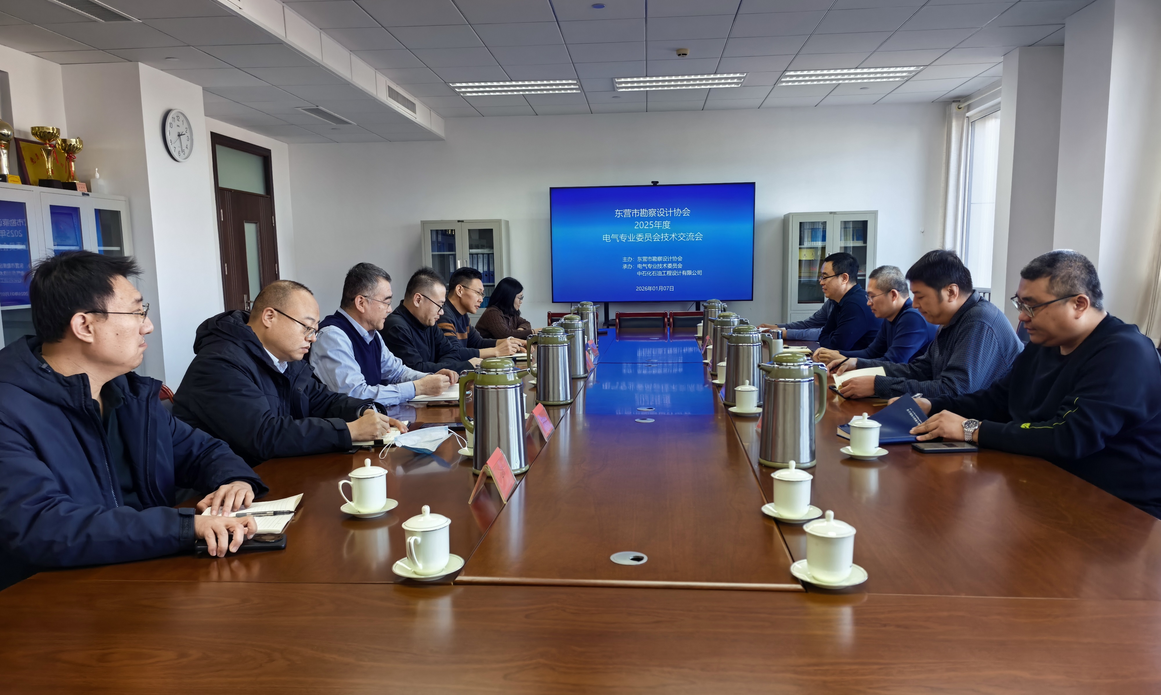 1月7日下午,东营市勘察设计协会2025年度电气专委会技术交流会在中石化石油工程设计有限公司成功举办。电气专委会主任乔时姣主持会议,李广智会长受邀参会。本次会议行业专家、企业同仁齐聚一堂,在线及现场共50余人参加了会议,共同探讨行业发展新路径。